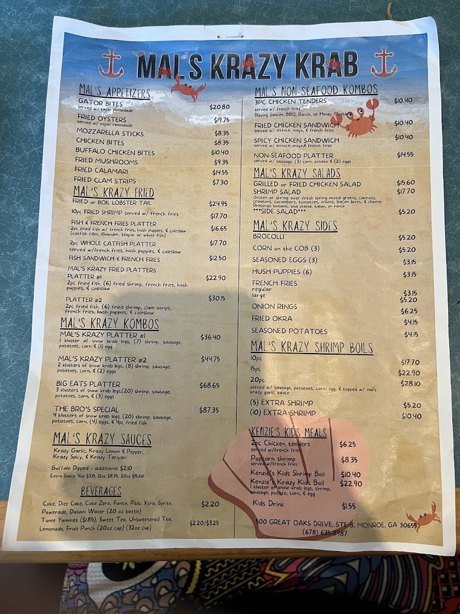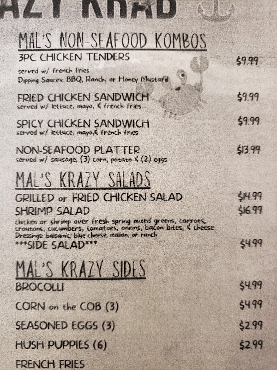MALS KRAZY KRAB Menu